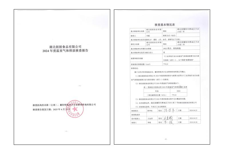 湖北妞妞食品有限公司2024年度温室气体排放核查报告